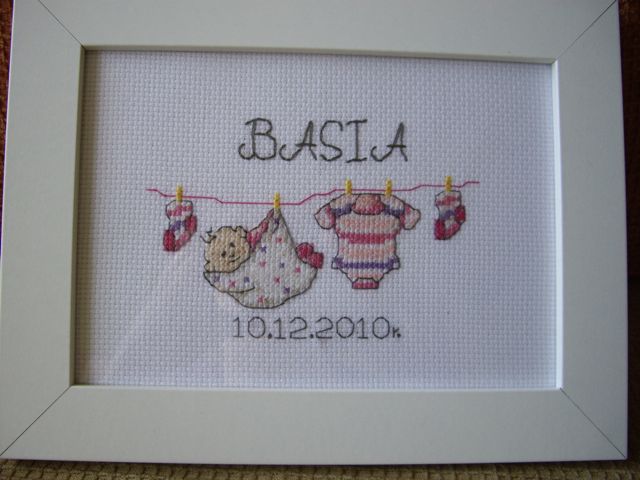 Żeby nie było, że nic nie robię. Owszem robię. Tajemniczy projekt na wymiankę, którego pokazać oczywiście nie mogę :) i metryczki. Tym razem metryczka dla panny Basi. Klasyka od początku do końca. Voila :)